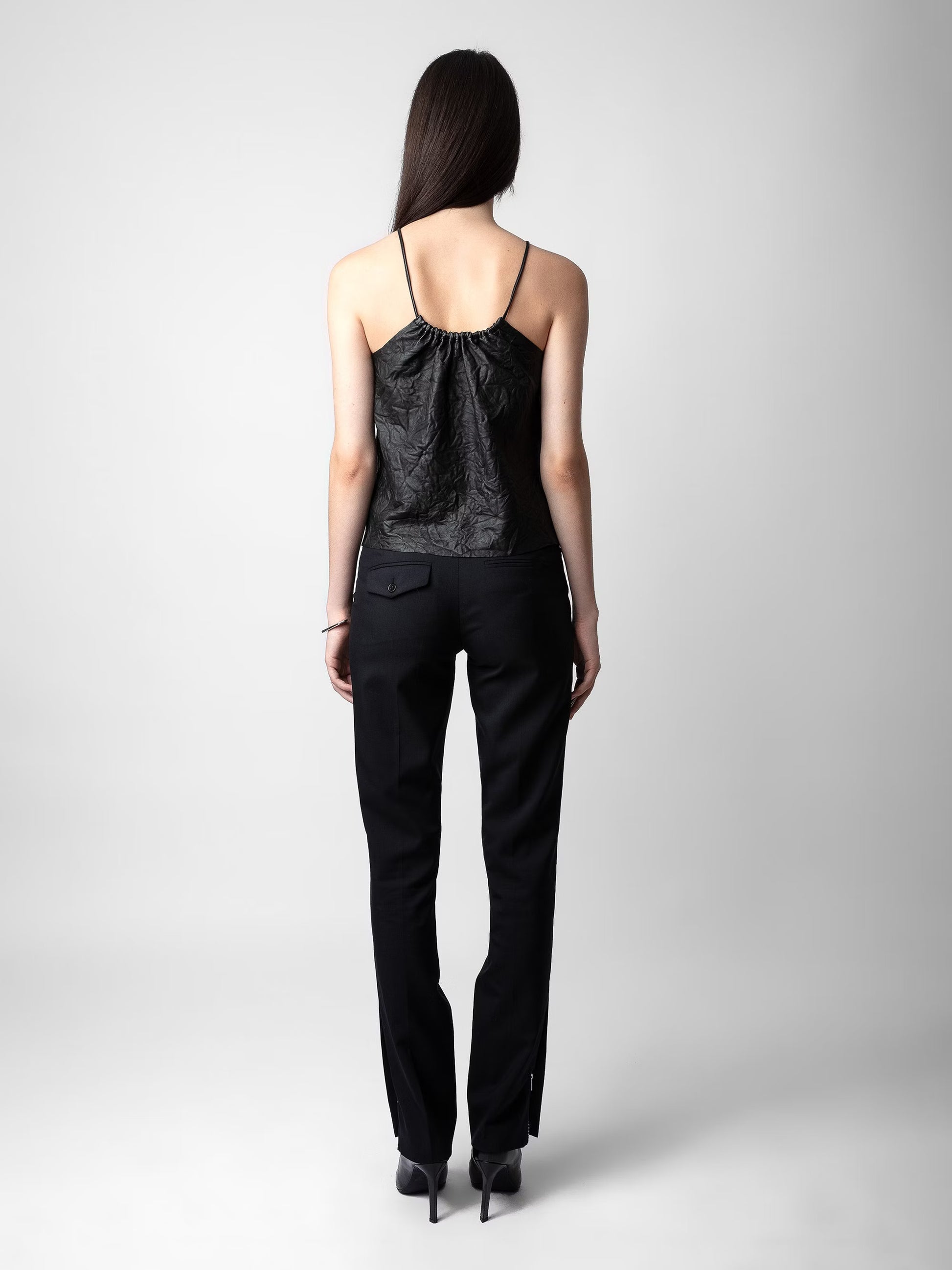 Top Cidonie Cuir Froissé haut noir femme
